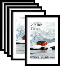 20x30 Picture Frame Set of 5, Black Poster Frame, Display Pictures 16 x 24 with Mat or 20 x 30 Without Mat for Horizontal or Vertical Wall Mounting, Wall Gallery Frame