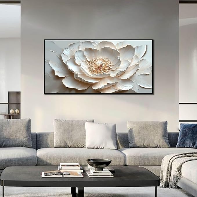 Flower Art Wall Decor for Living Room - White Canvas Wall Art for Office - Large Black Framed Wall Art for Bedroom Size 29" x 59"