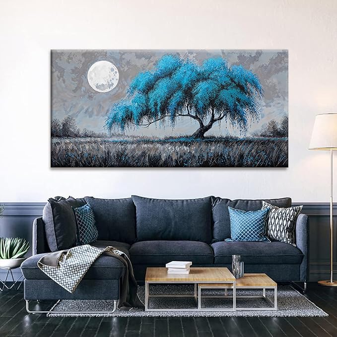 Large Wall Art For Living Room Modern Blue Tree Of Life Wall Art Decor Canvas Prints Artwork For Wall Decor Bedroom Office Kitchen Ready To Hang 29x58 Inch