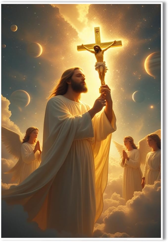 Christian Wall Art Print, Religious Scripture Biblical Decor, Faith-Based Inspirational Landscape with Cross, Digital Printed Canvas Poster for Church, Home Chapel, Prayer Room Decor