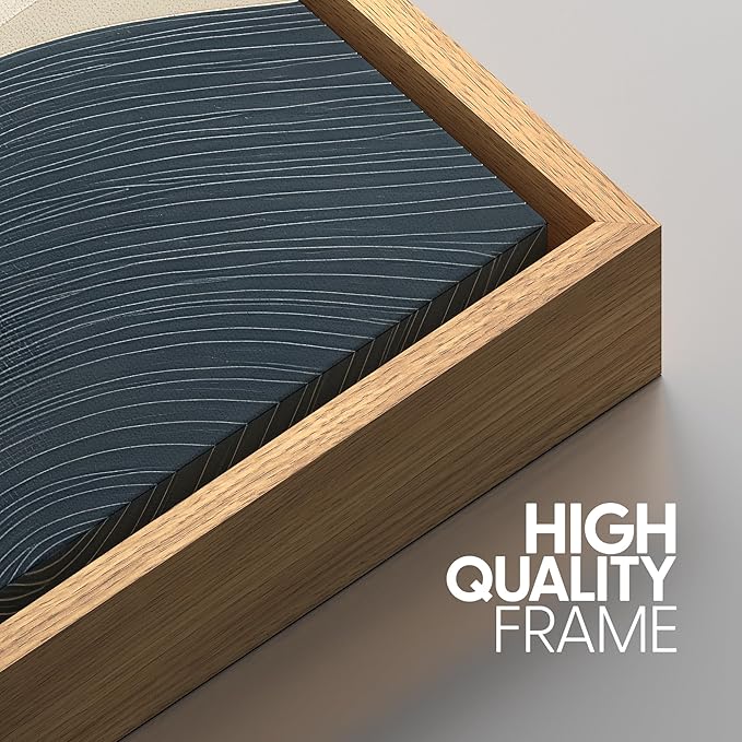 SIGNWIN Framed Wall Art Print Set Minimalist Blue and Beige Wave Modern Abstract Photography Modern Art Minimalist Closeup Dramatic for Living Room, Bedroom, Offic - 24"x36"x3 NATURAL