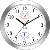 HITO 10 Inch Silent Wall Clock Battery Operated Non Ticking Glass Cover Silver Aluminum Frame, for Kitchen, Bedroom, Home Office, Living Room Decor (White)