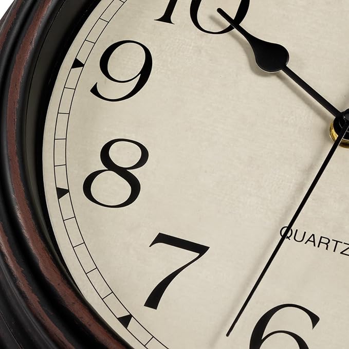 Foxtop Retro Silent Non-Ticking Round Classic Clock Quartz Decorative Battery Operated Wall Clock for Living Room Kitchen Home Office 12 Inch (Bronze)
