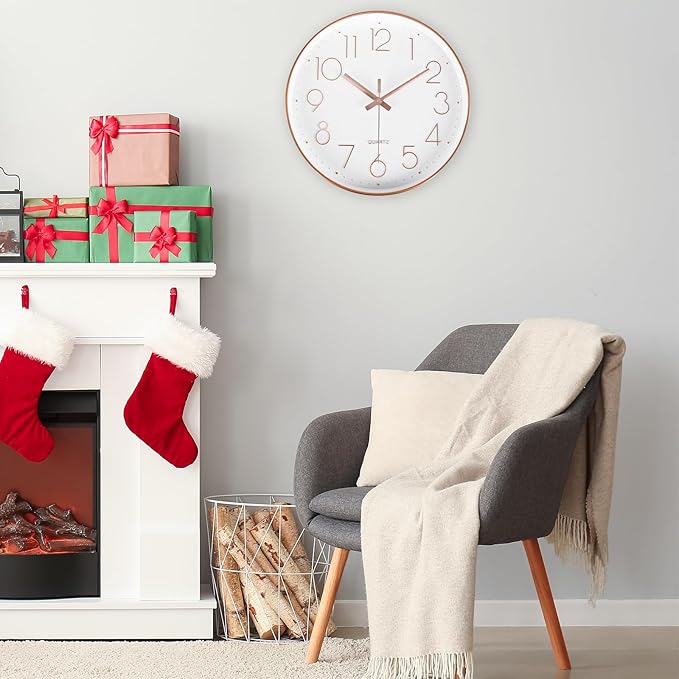 jomparis 12 Inch Battery Operated Silent Non-Ticking Wall Clock, Quality Quartz Sweep Rose Gold Wall Clock for Home Bedroom School