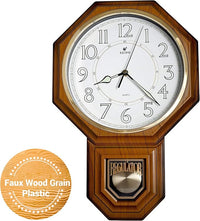 JUSTIME Traditional Schoolhouse Luminious Arabic Regulator Wall Clock, Chiming Wall Clocks with Pendulum & Westminster Chime Hourly, Schoolhouse Wall Decor Battery Operated (Light Wood Grain)