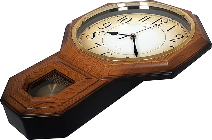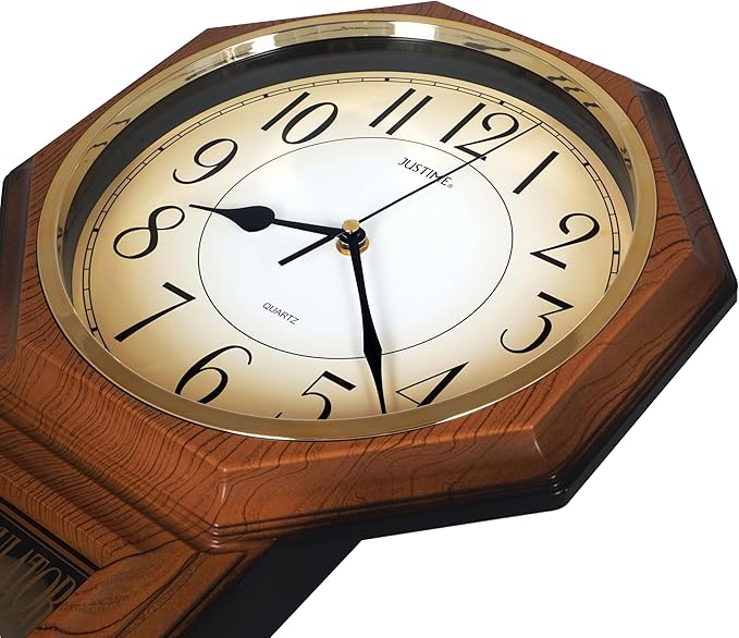 JUSTIME Traditional Schoolhouse Gradient Arabic Regulator Wall Clock, Chiming Wall Clocks with Pendulum & Westminster Chime Hourly, Schoolhouse Wall Decor Battery Operated (Light Wood Grain)