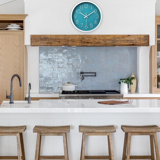 jomparis 12 Inch Silent Non-Ticking Battery Operated Round Turquoise Wall Clock Easy to Read for Pool/Home/Office/School/Kitchen/Bedroom/Living Room Teal Clocks