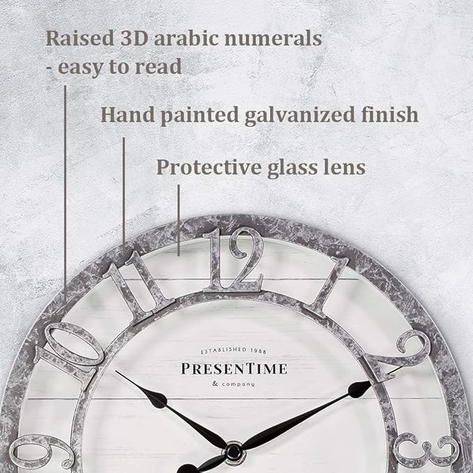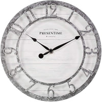 Presentime & Co 10" Farmhouse Series Wall Clock, Quartz Movement, Shiplap Style, Raised 3D Arabic Numeral, Galvanized Finish