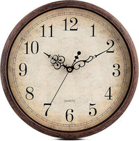 Bernhard Products Vintage Brown Wall Clock Silent Non Ticking 12 Inch Quality Quartz Battery Operated Round Decorative Easy to Read for Home Kitchen Living/Dining Room Bedroom Office Classroom School