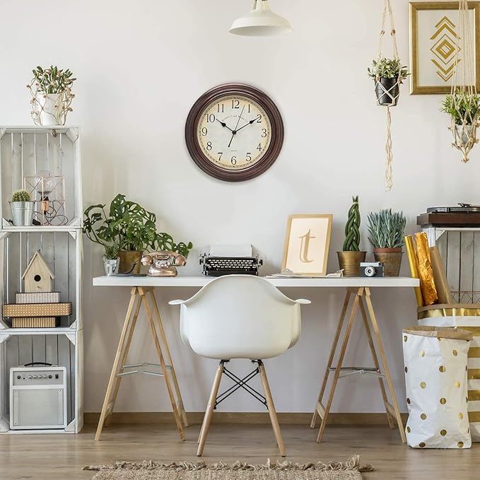 Bernhard Products Vintage Wall Clock Silent Non Ticking - 12 Inch Quality Quartz Battery Operated Decorative Brown Clock for Home Kitchen Living/Dining Room Office Decor, Easy to Read, Rustic Bronze