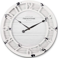 Presentime & Co 10" Farmhouse Series Wall Clock, Shiplap Style, Raised 3D Arabic Numeral, Antique Distressed White