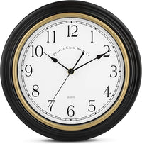 Bernhard Products Decorative Black Wall Clock 12 Inch Silent Non Ticking Battery Operated Vintage Elegant Retro Clocks for Living Room Decor, Kitchen Office Dining Room Bedroom School Classroom