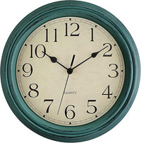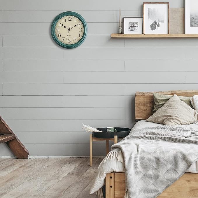 Foxtop Retro Silent Non-Ticking Round Classic Clock 12 Inch Quartz Decorative Battery Operated Wall Clock for Living Room Kitchen Home Office (Turquoise)