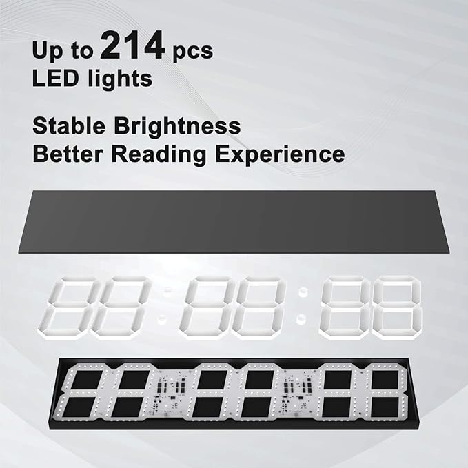 Digital Wall Clock, Oversize Led Digital Clock with Auto Dimmer, Huge Countdown Timer with Remote Control, 27" Wide Led Display, 6 Digits, Wall Mount, Date and Temperature (White)