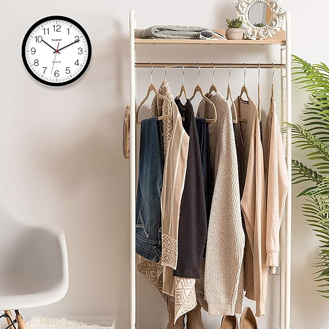 Sharp Wall Clock – Black, Silent Non Ticking 14 Inch Quality Quartz Battery Operated Round Easy to Read Home/Kitchen/Office/Classroom/School Clocks, Sweep Movement