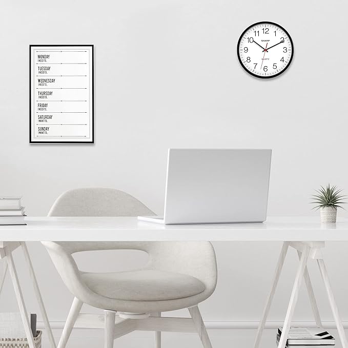Sharp Wall Clock Silent Non Ticking 10 Inch Quality Quartz Battery Operated Round Easy to Read Home/Kitchen/Office/Classroom/School Clocks, Sweep Movement,Black