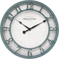 Presentime & Co 10" Farmhouse Series Wall Clock, Shiplap Style, Silent No Ticking, Raised 3D Arabic Numeral, Aged Teal Finish