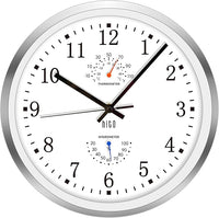 HITO 12 Inch Silent Wall Clock Battery Operated Non Ticking Glass Cover Silver Aluminum Frame, for Living Room Decor, Kitchen, Bedroom, Home Office (12" White)