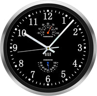 HITO 12 Inch Silent Wall Clock Battery Operated Non Ticking Glass Cover Silver Aluminum Frame, for Kitchen, Bedroom, Home Office, Living Room Decor (12" Black)