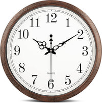 Bernhard Products Large Wall Clock 16 Inch Silent Non Ticking Movement Quartz Battery Operated Round Easy to Read Decorative Classic Brown Home/Kitchen/Office/Classroom/School Clocks, Black Numbers