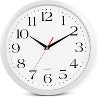 Bernhard Products White Wall Clock Silent Non Ticking, 12 Inch Quality Quartz Battery Operated Round Easy to Read Home/Office/Kitchen/Classroom/School Sweep Clock, Black Hands