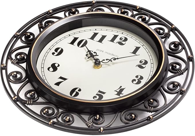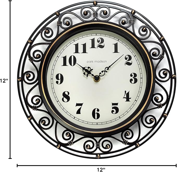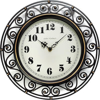 Decorative Iron Style Wall Clock 12 Inch Silent Battery Operated Vintage Elegant Retro Clocks for Living Room Decor, Kitchen Office Dining Room Bedroom School Classroom (13736)