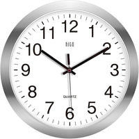 HITO 12 Inch Silent Wall Clock Battery Operated Non Ticking Glass Cover Silver Aluminum Frame, for Kitchen, Bedroom, Home Office, Living Room Decor