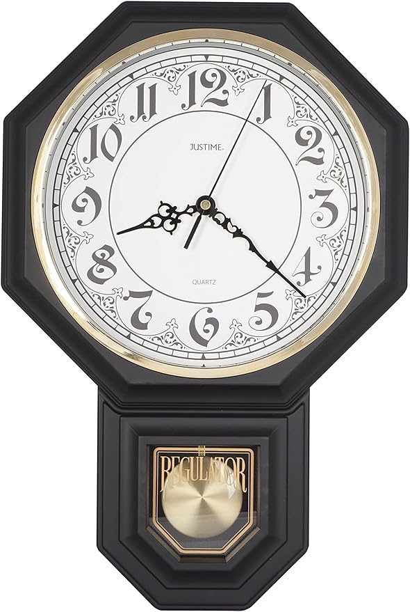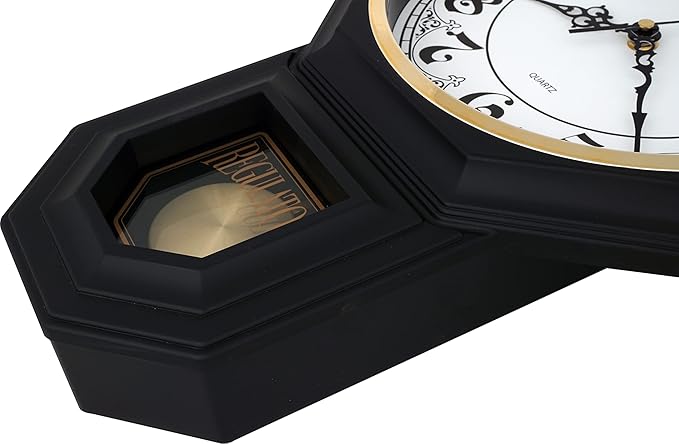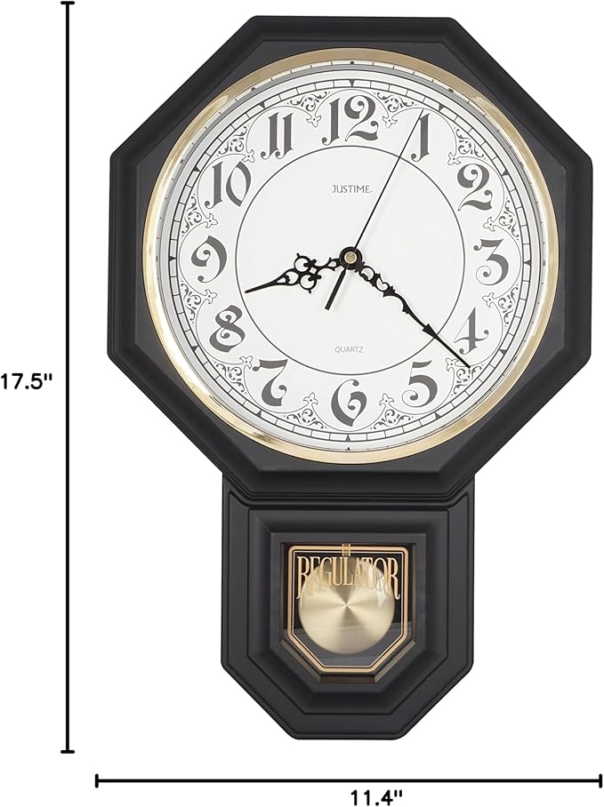 JUSTIME Traditional Schoolhouse Classic Vintage Arabic Regulator Wall Clock, Chiming Wall Clocks with Pendulum & Westminster Chime Hourly, Schoolhouse Wall Decor Battery Operated (Matte Black)