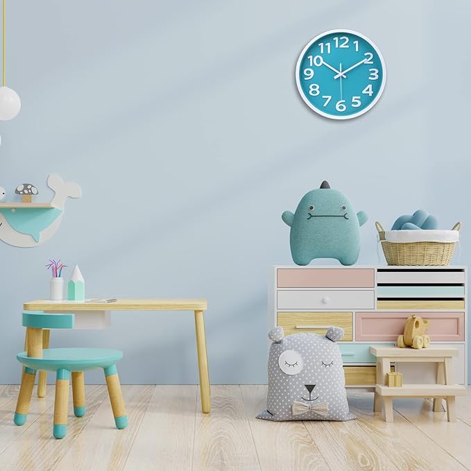 Wall Clock Silent Non Ticking Indoor Outdoor Clock Battery Operated Easy to Read Analog Decorative Clocks for Bedroom Office Home Patio Pool Porch Decor,12 Inch Aqua