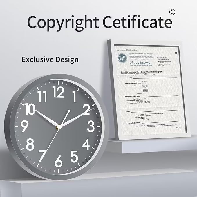 AKCISOT Wall Clock Bathroom 10 Inch Analog Small Wall Clocks Battery Operated - Silent Non Ticking Modern Simple Style Clock Decorative for Kitchen,Bedroom,Home Office,Living Room,School(Gray)