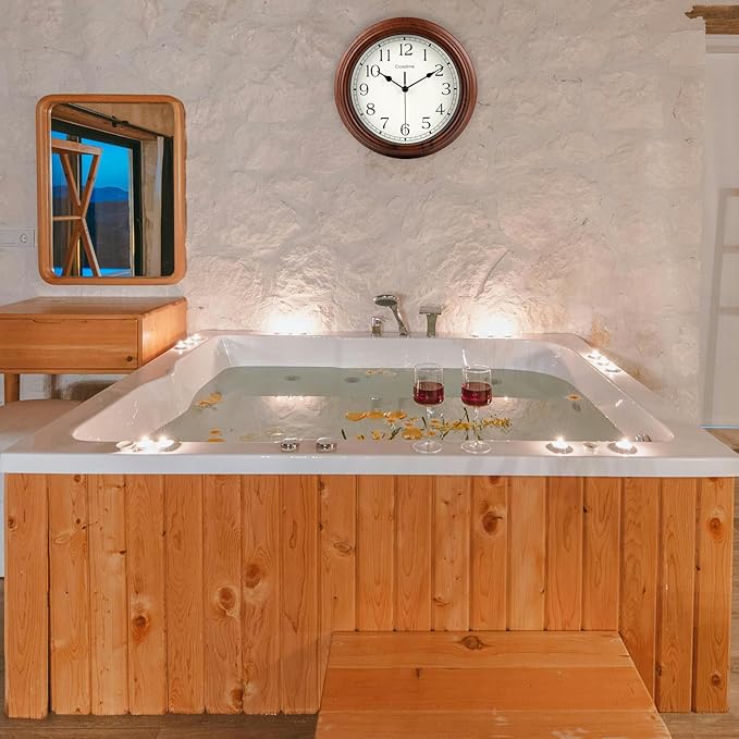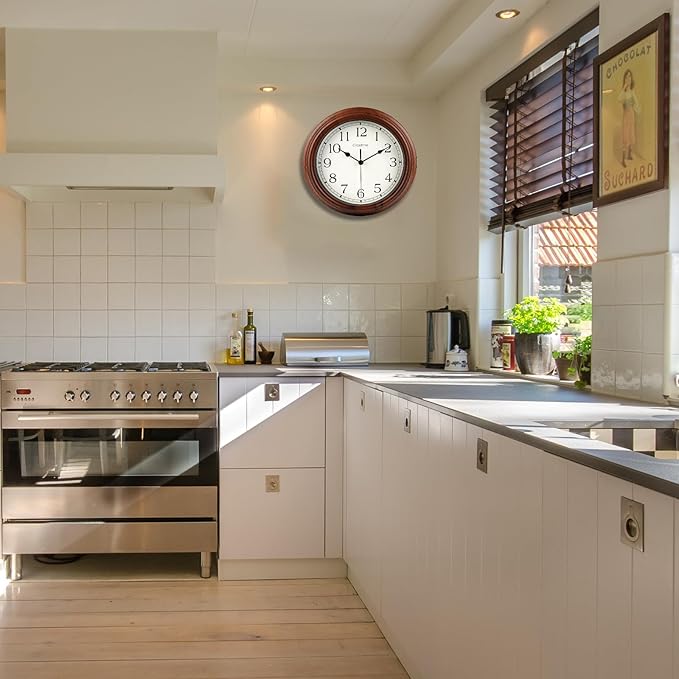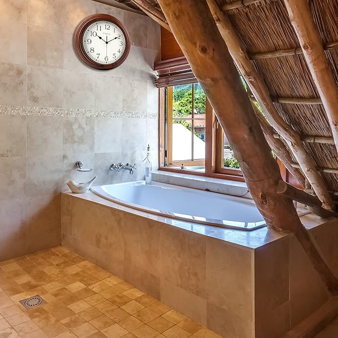Wall Clock, Wood Grain Vintage Retro Decorative Battery Operated Waterproof Wall Clocks for Kitchen Bathroom Living Room Home Decor,12 Inch Brown