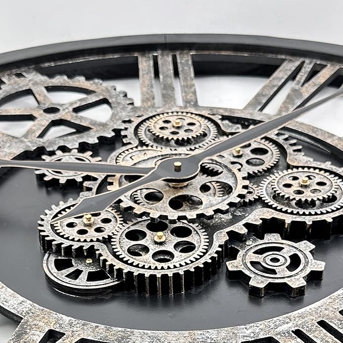 HOIBAI Large Wall Clock, Wall Clocks for Living Room Decor 36 Inch Farmhouse Vintage Rustic Kitchen Wall Decor Vintage Roman Oversized Wall Clock for Home Bedroom House, Moving Gears Clock
