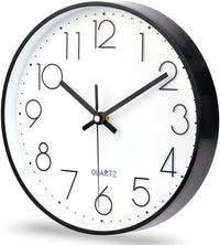 jomparis 10 Inch Black Wall Clock Battery Operated Silent & Non-Ticking Wall Clock Classic Clock for Home, Office, Bedroom, School