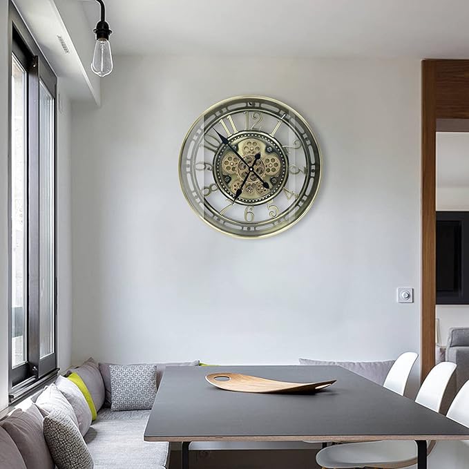 Real Moving Gears Wall Clock Large Modern Metal Clocks for Living Room Decor, Industrial Steampunk Unique Vintage Rustic Decorative Clock for Home Farmhouse Office, 27.6 Inch,Bronze Gold Arabic