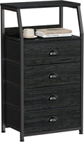 Furnulem Nightstand with 3 Drawers and 2-Tier Shelf, Fabric Small Dresser Organizer Vertical Storage Tower for Bedroom, Closet, Hallway, Nursery, End Table Side Furniture, Sturdy Steel Frame, Wood Top