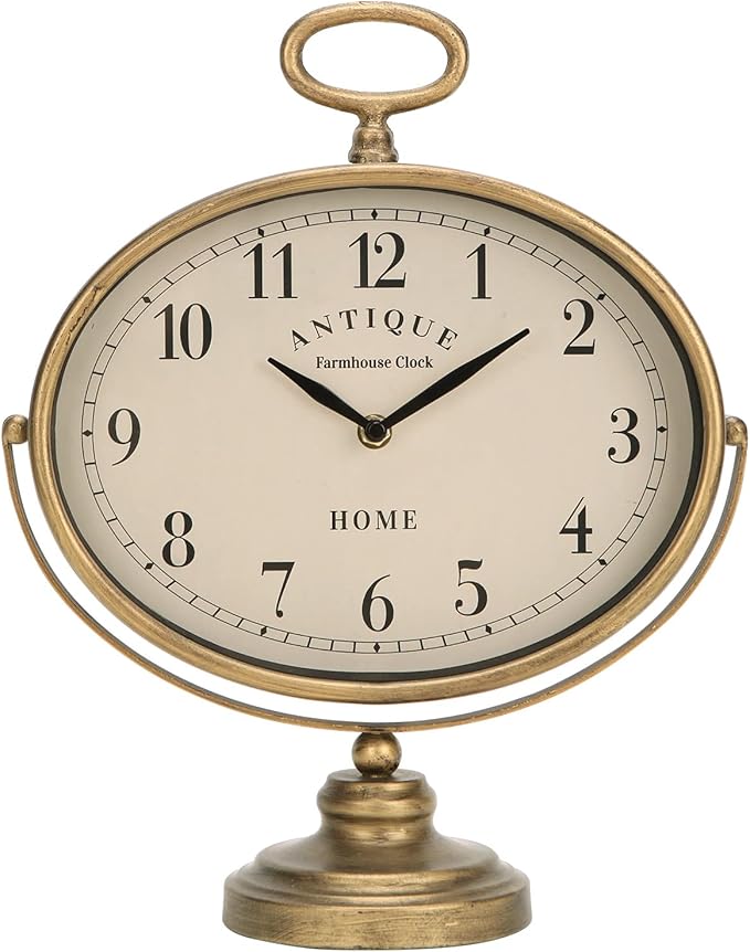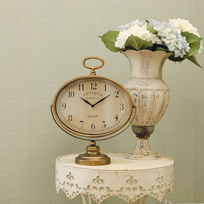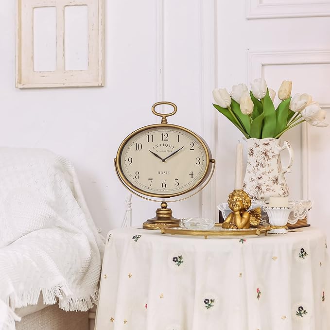 NIKKY HOME Antique Table Clock, Gold Retro Desk Clock with Silent-Non-Ticking Battery Operated Rustic Desk Clock for Living Room, Tabletop, Countertop