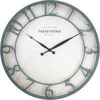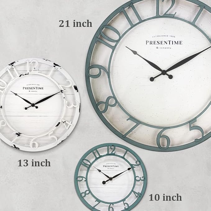 Presentime & Co 21" Farmhouse Series Wall Clock,Vintage Style, Retro Clock, Raised 3D Arabic Numeral, Aged Teal Finish. Wall Décor for Living Room and entryway.