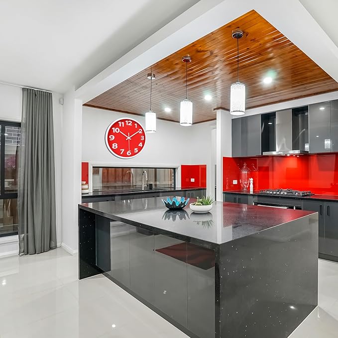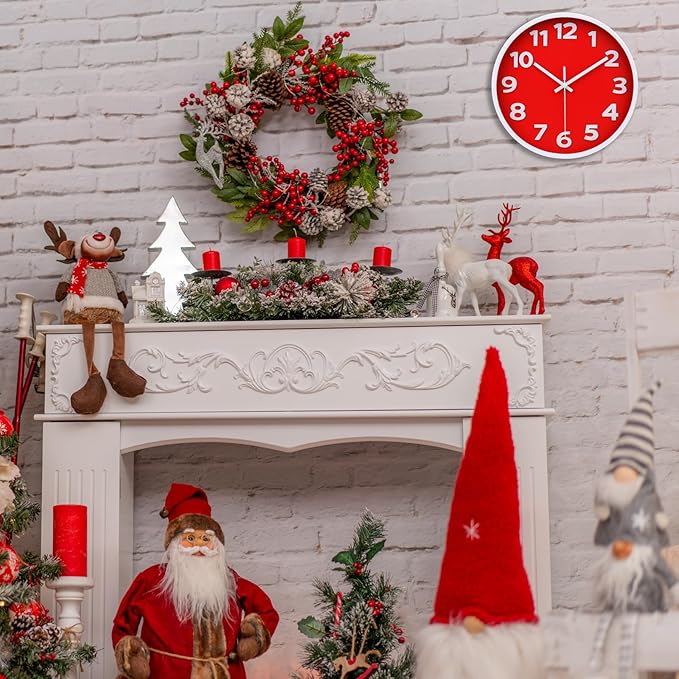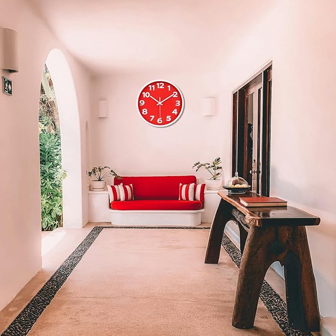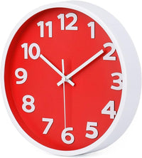 Red Wall Clock 10 Inch Silent Non-Ticking Battery Operated,Small Modern Wall Clocks Quality Quartz Analog Clock Decorative for Kitchen Home School Office, 3D Numbers Easy to Read