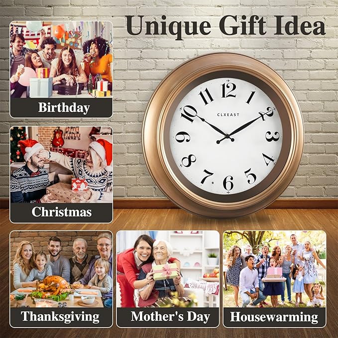 CLXEAST 18 Inch Glow in The Dark Wall Clocks for Living Room Decor, Large Illuminated Gold Wall Clock,Antique Brushed Gold,House Warming Gifts New Home