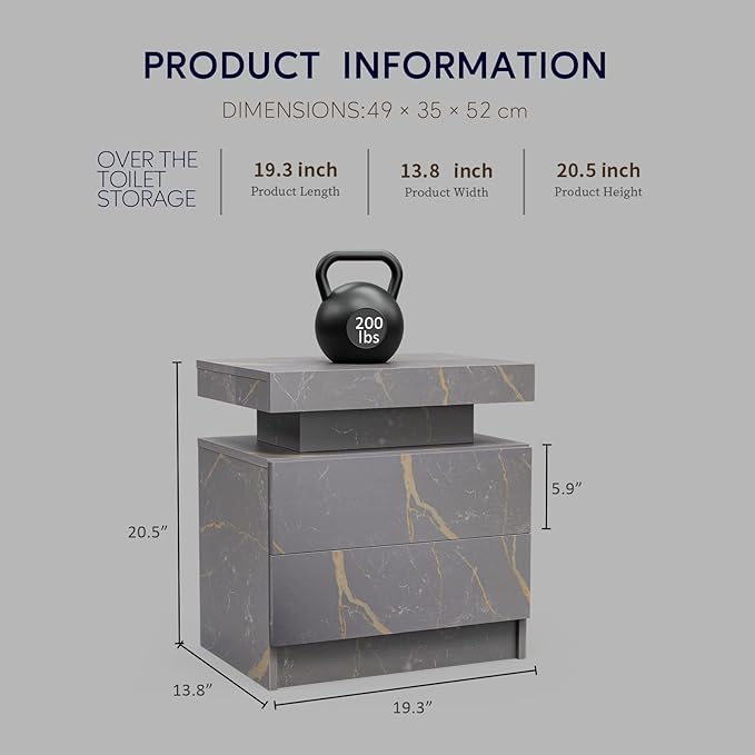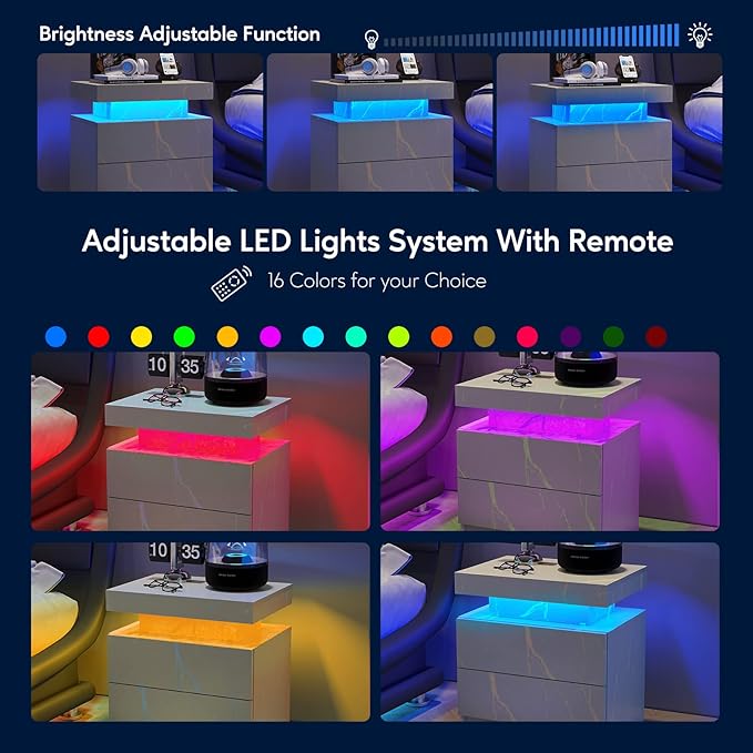 LED Nightstands, Bedside Table with 2 Drawers, Side Table with Changing RGB Light & Remote, Modern Bedroom Furniture, Grey Marble Pattern Sale