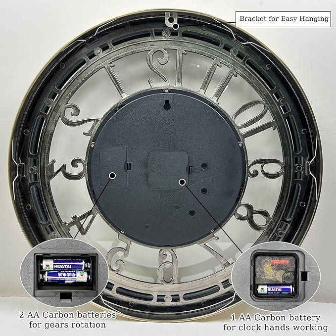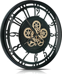 DORBOKER Moving Gears Wall Clock Large Modern Metal Clocks for Living Room Decor, Industrial Steampunk Unique Vintage Rustic Decorative Clock for Home Farmhouse Office, 27.6 Inch,Black Gold Arabic