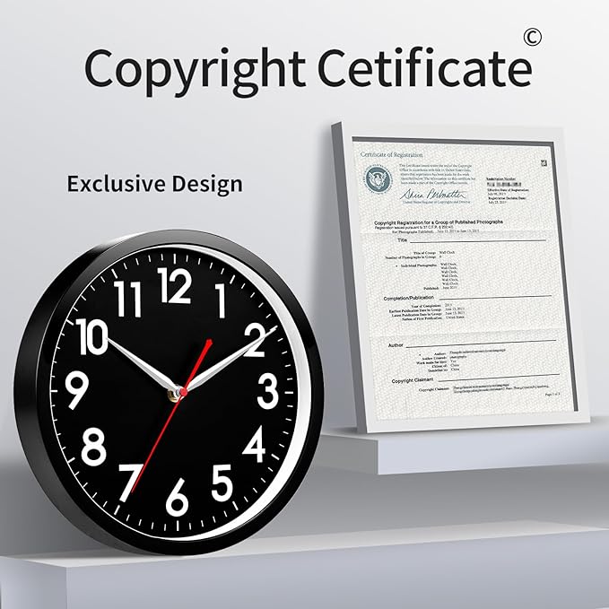 AKCISOT Wall Clock Modern Black Silent Non Ticking Wall Clocks Battery Operated 12 Inch, Small Analog Classic Clock Decorative for Bedroom, Kitchen, Home Office, Bathroom, School, Living Room