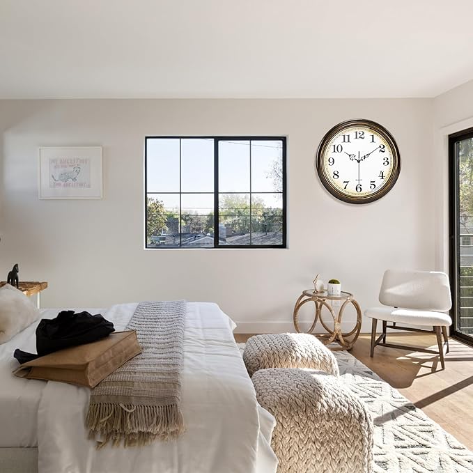 Wall Clock Battery Operated Silent Non-Ticking Vintage Wall Clocks for Kitchen, School, Living Room (12Inch, Bronze)