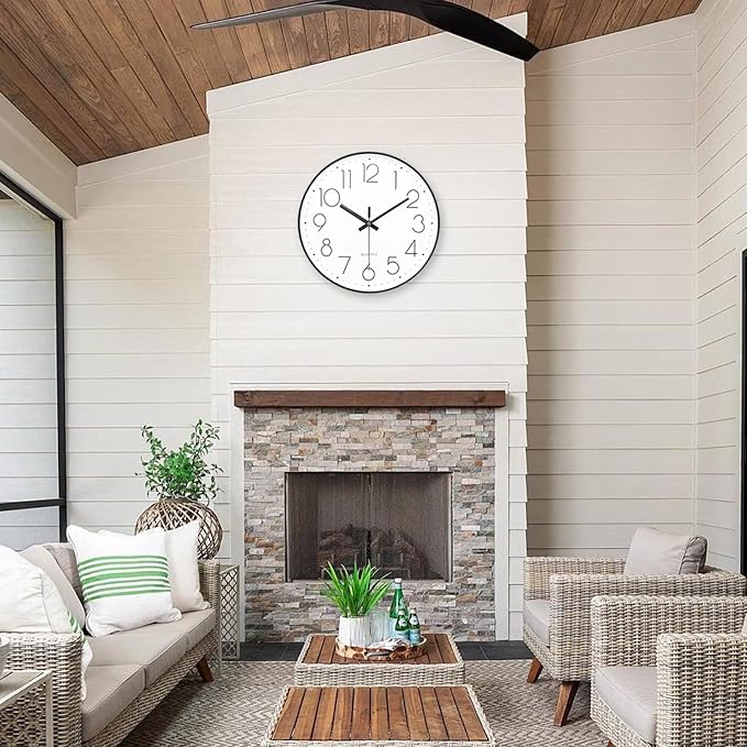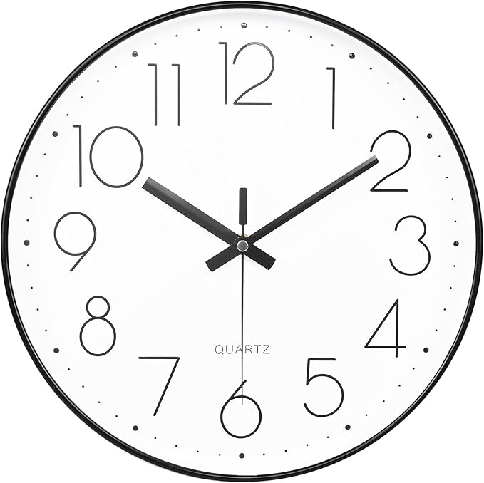 Wall Clock 12 Inch Silent Non-Ticking Modern Wall Clocks Battery Operated for Living Room, Kitchen, Office Decor (Black)