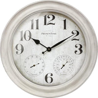 Presentime & Co. 26" Clifton in/Outdoor Farmhouse Clock with Thermometer & Hygrometer as All in One Weather Station, Farmhouse Wall Art and Timepiece for Home Decoration, Weathered White Finish