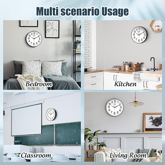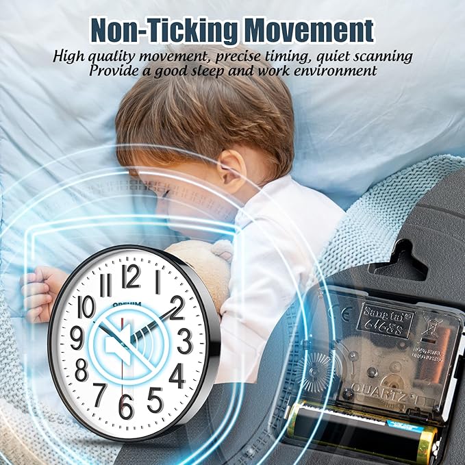 Wall Clock Wall Clocks Silent Non-Ticking Battery Operated Large Easy to Read with Stereoscopic Dial Ultra-Quiet Movement Quartz for Office Classroom School Home Kitchen (10 inches)…