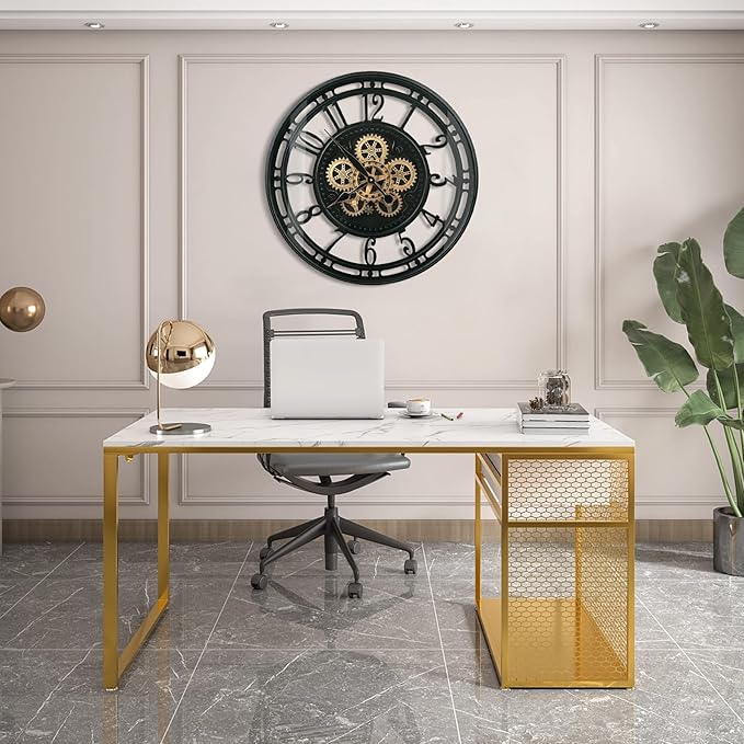 DORBOKER 30 Inch Real Moving Gears Wall Clock Large Modern Metal Clocks for Living Room Decor, Industrial Steampunk Unique Vintage Rustic Decorative Clock for Home Farmhouse Office,Black Gold Arabic