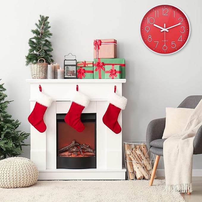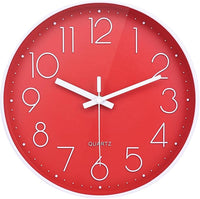 Wall Clock 12 Inch Silent Non-Ticking Battery Operated Modern Wall Clock for Home Living Room Decor (Red)