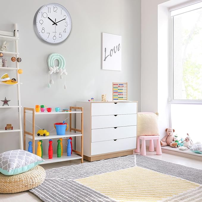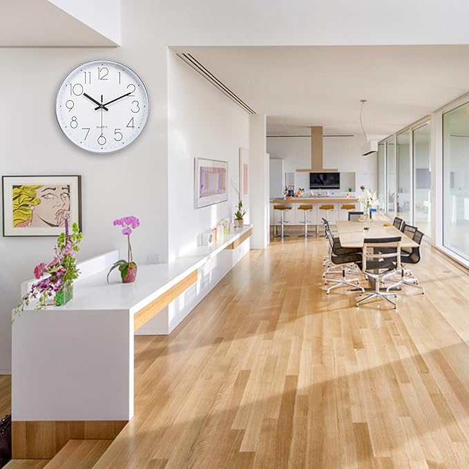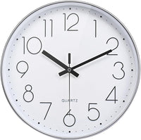 12 Inch Wall Clock Silent Non-Ticking Modern Clocks Battery Operated for Office, School (Silver)