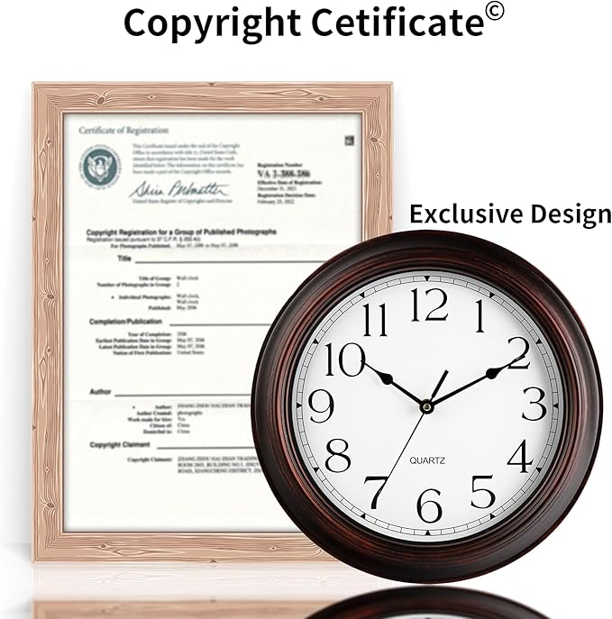 Wall Clock 10 Inch Battery Operated Silent Non-Ticking Wall Clock Vintage Retro Rustic Style Decorative for Bedroom Living Room Kitchen Home Office (Bronze)